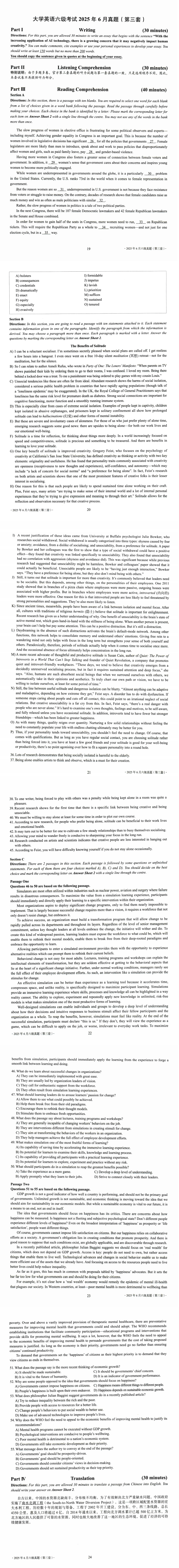 《2025年6月英语六级真题及答案完整版(第三套)》